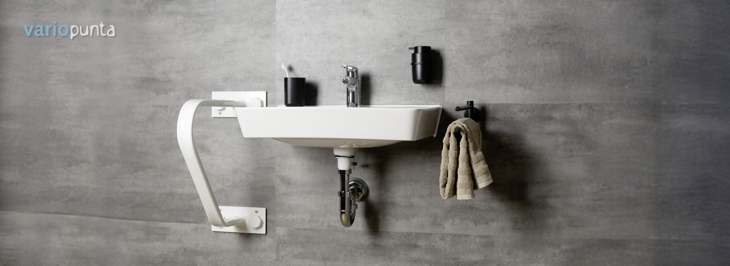 Der Variopunta Universalstützgriff besticht durch seine außergewöhnliche Vielseitigkeit. Ob neben dem Waschbecken, der Toilette, in der Dusche oder an der Badewanne – Variopunta bietet mit seiner langen, in den Raum ragenden Grifffläche die notwendige Sicherheit für jede Situation.