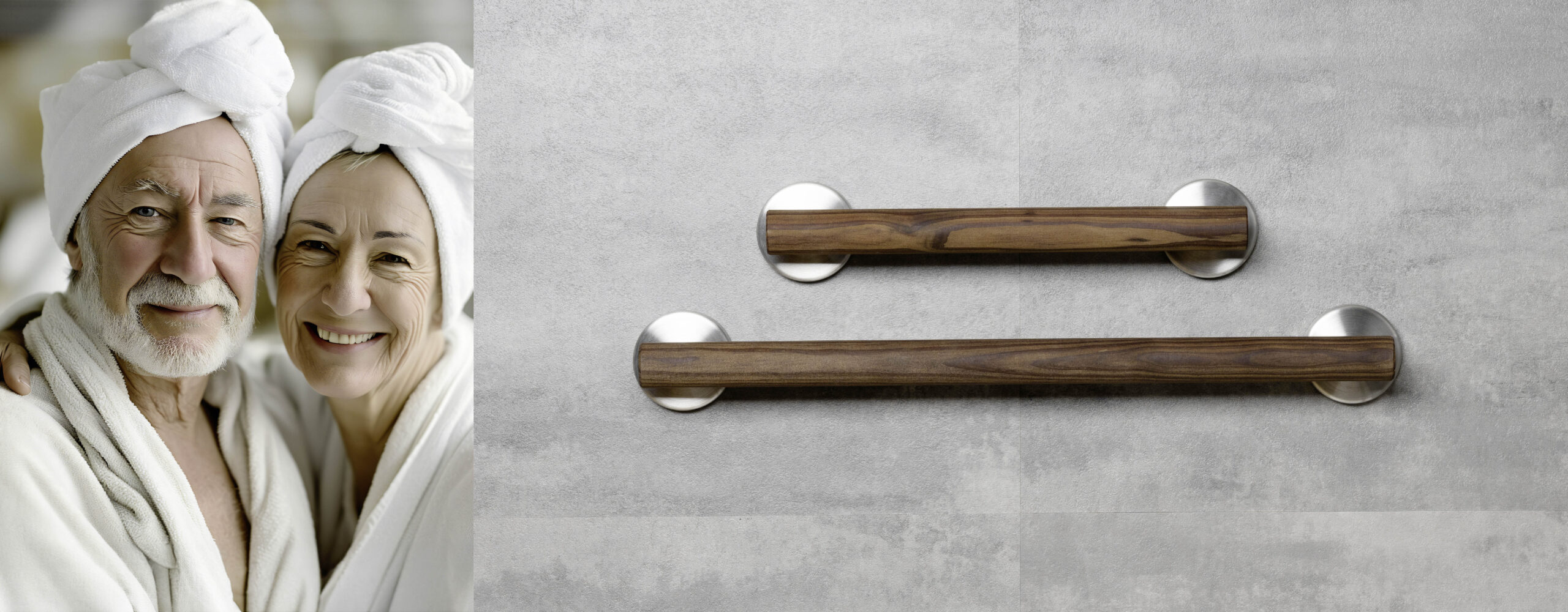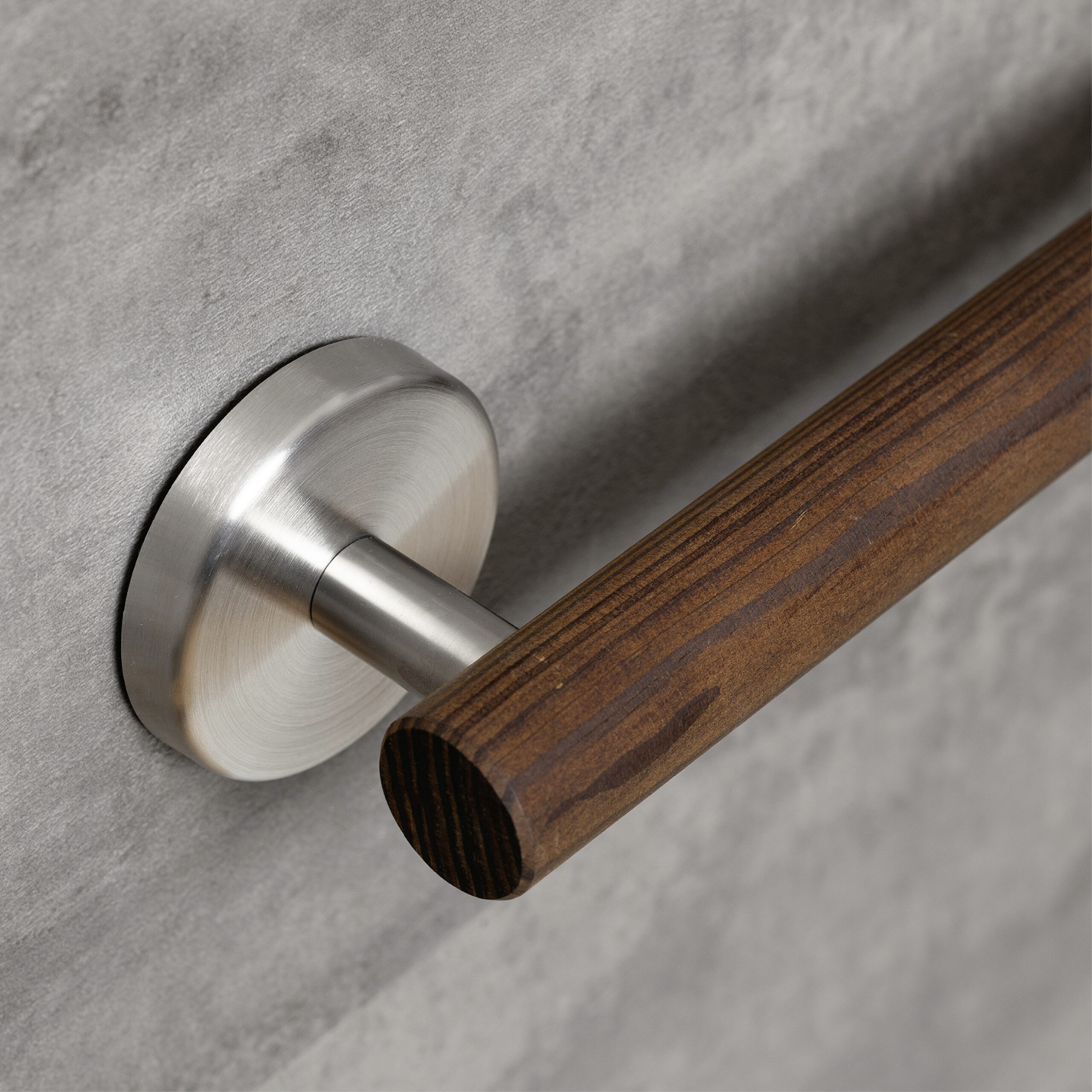 The varioplus Kebo grab bar brings natural warmth and exquisite aesthetics to your bathroom. Made from sustainable Nordic pine wood treated with a special technology, this grab bar offers exceptional durability and resistance. Even in constantly damp environments, the wood remains stable, does not swell, and resists mold growth, making it an ideal choice for the sanitary area.